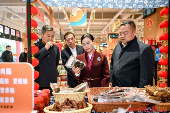 1月9日下午,市委副书记、市长韦朝晖在市文旅体育集团、市农林集团调研。图为韦朝晖在市农林集团“怀乡怀品”总店详细了解市场拓展等情况。怀化日报全媒体记者 吴涛 摄